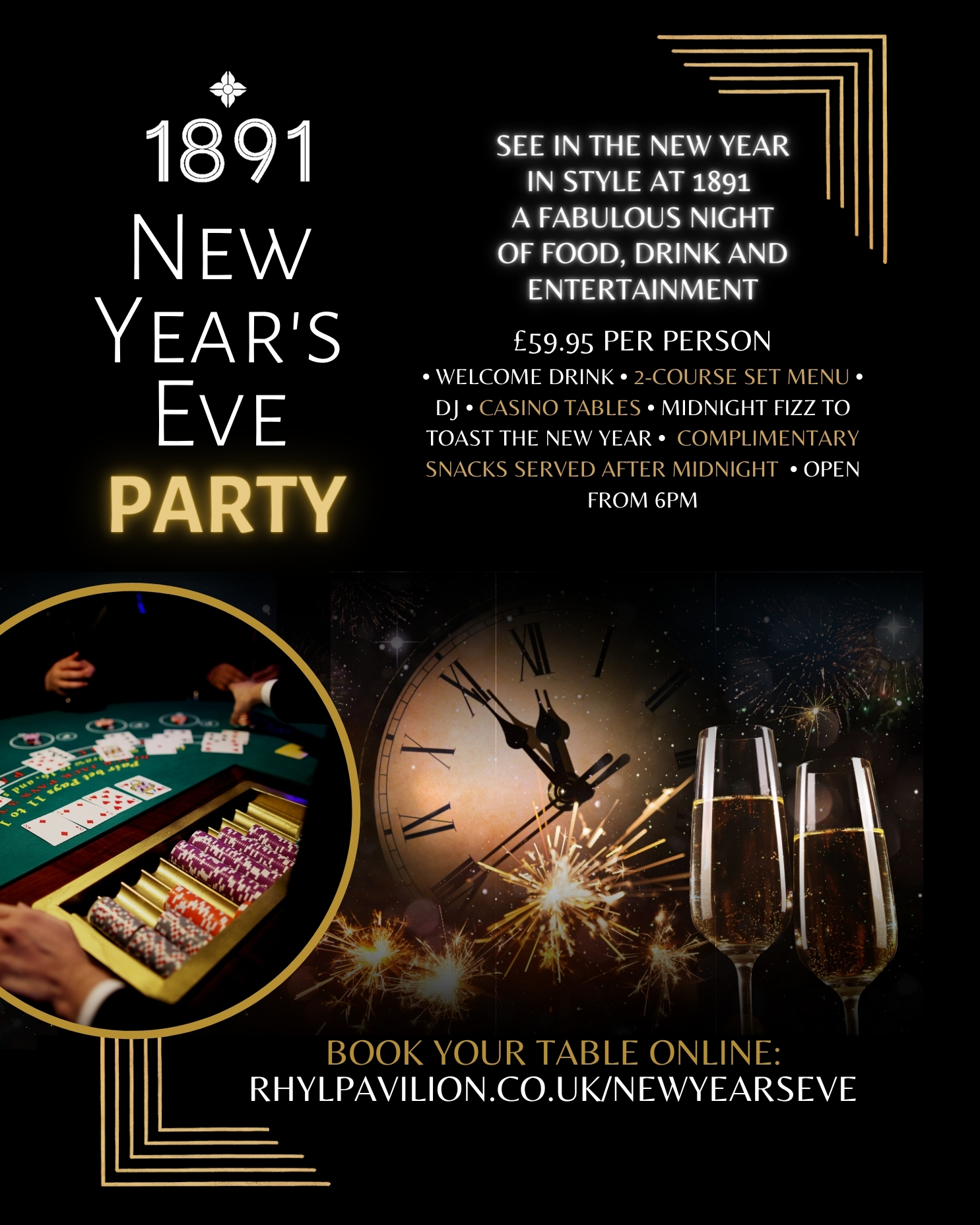 See in the New Year in style at 1891. A fabulous night of food, drink and entertainment